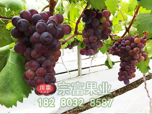 【品种特征】穗圆锥形带副穗,大,穗长19.7cm,穗宽14.2cm,平均穗重675g,大穗重1150g以上。果穗大小整齐,果粒着生中等紧密。果粒椭圆形,紫红色。平均粒重10.1g,大粒重17g。果粉中等多。皮中等厚。果肉较软,汁中等多,白色,味酸甜,有浓郁玫瑰香味。每果粒含种子1~2粒。种子与果肉易分离。可溶性固形物含量为19%~25%,总糖含量为17.2%,可滴定酸含量为0.43%。鲜食品质上等。可大力发展。